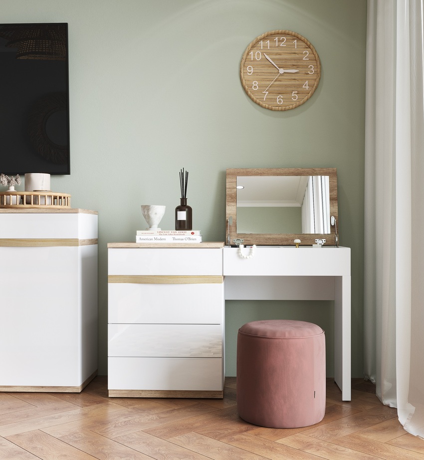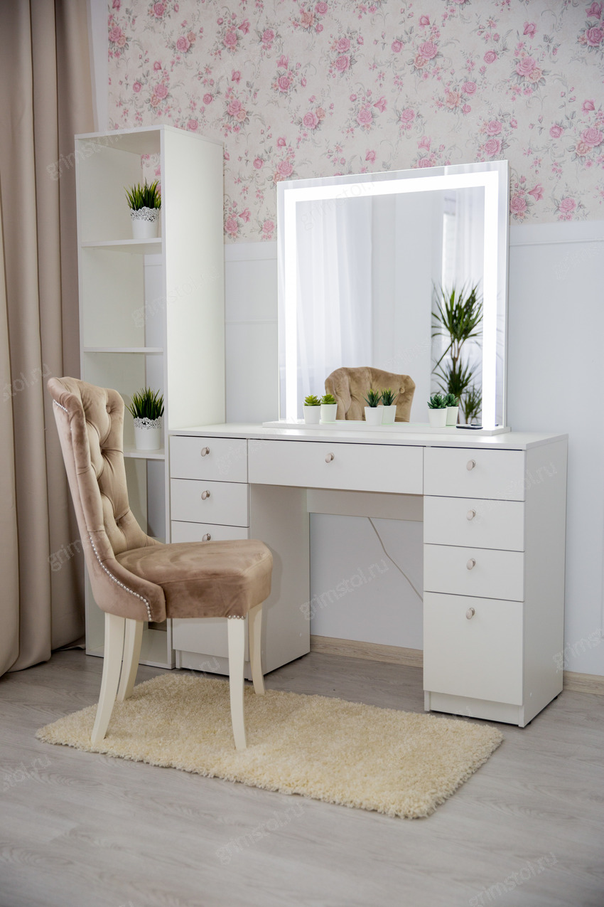 Не стоит забывать о важном тандеме: туалетном столике и стуле. Высота стула или пуфика должна соответствовать высоте столика, создавая комфортную атмосферу для красоты