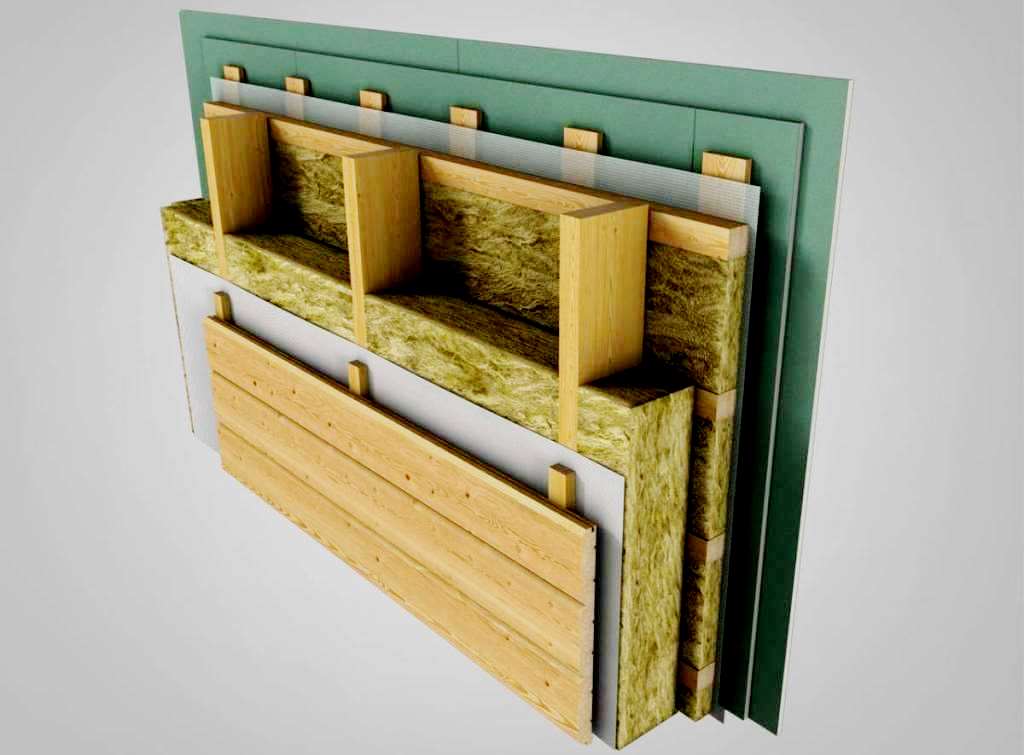 Классический «пирог» утепления каркасного дома минераловатными плитами выглядит следующим образом: