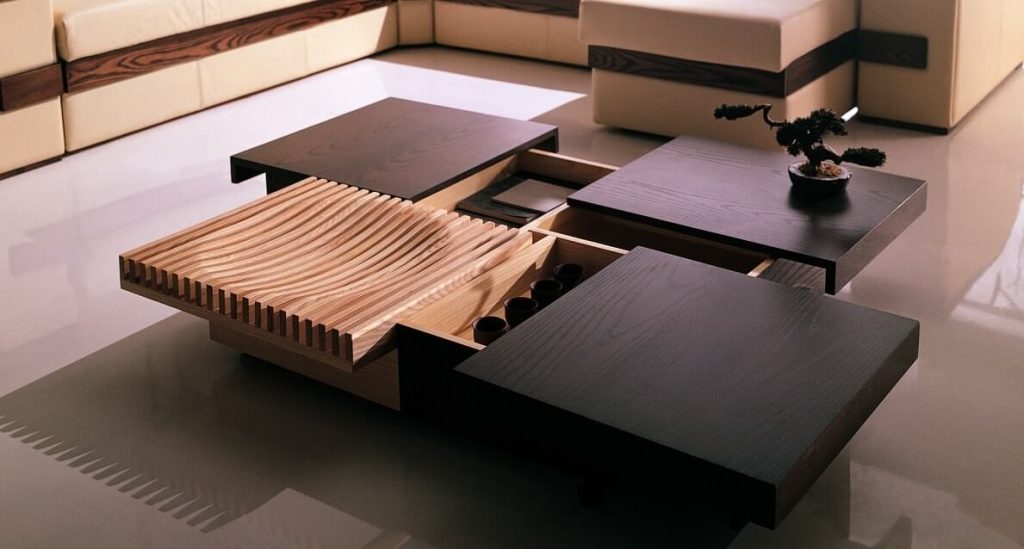 - Наличие механизма для раскладывания: обычный или журнальный столик трансформер.