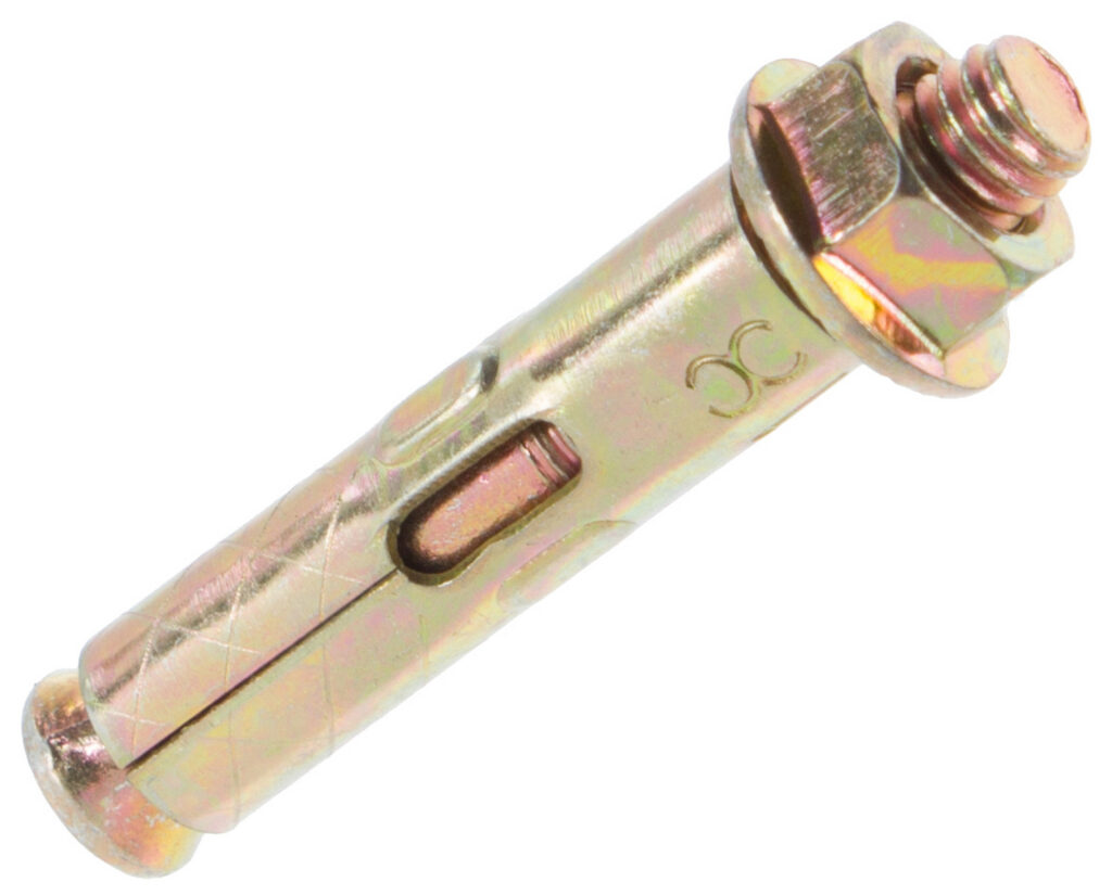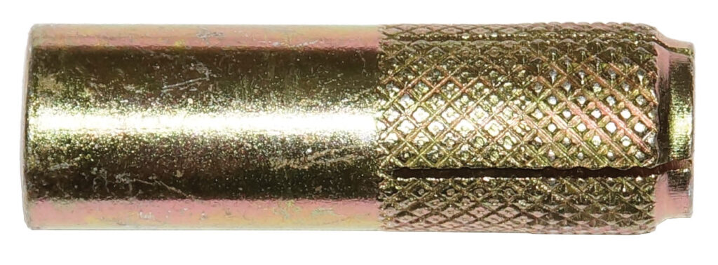 Выполнен в виде полого стержня, один конец которого имеет наружную резьбу, а второй представляет собой втулку, надрезанную вдоль оси на 4 части. Данные виды анкеров забивают в отверстие стороной, на которой расположена втулка. В центральное отверстие вставляется стержень, напоминающий гвоздь.