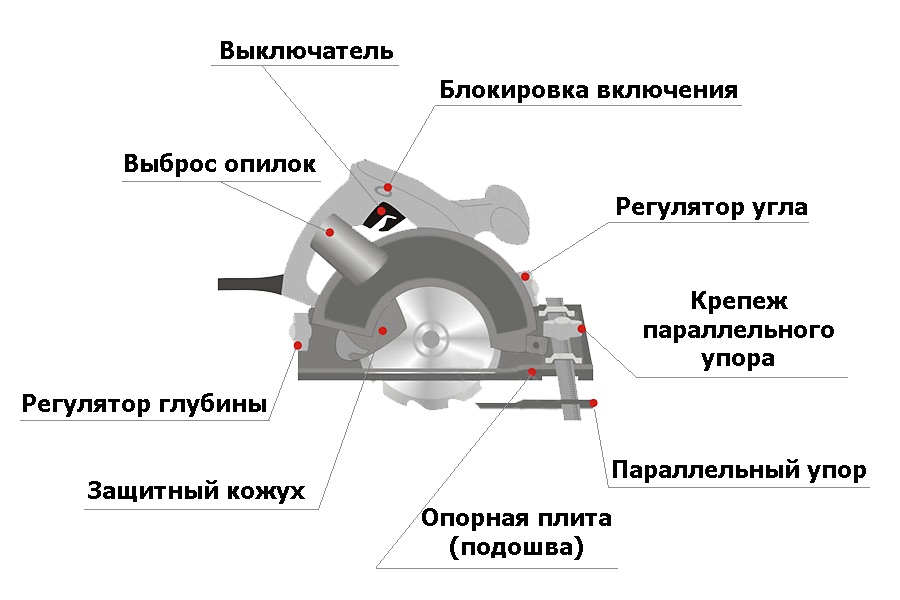 Конструкция ручной циркуляционной пилы отличается простотой и надежностью. Ее основными элементами являются: