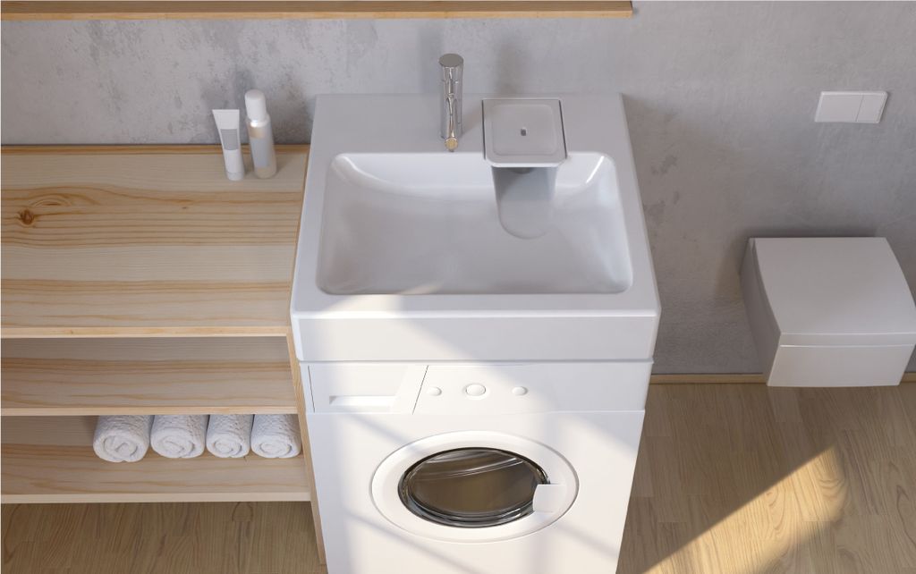Есть большой риск падения раковины, если установить обычную. Для установки над стиральными машинами есть вариант формы «кувшинка», изготовленный из более толстого материала, это подвесная раковина, которая не создает давления на поверхность стиральной машины.