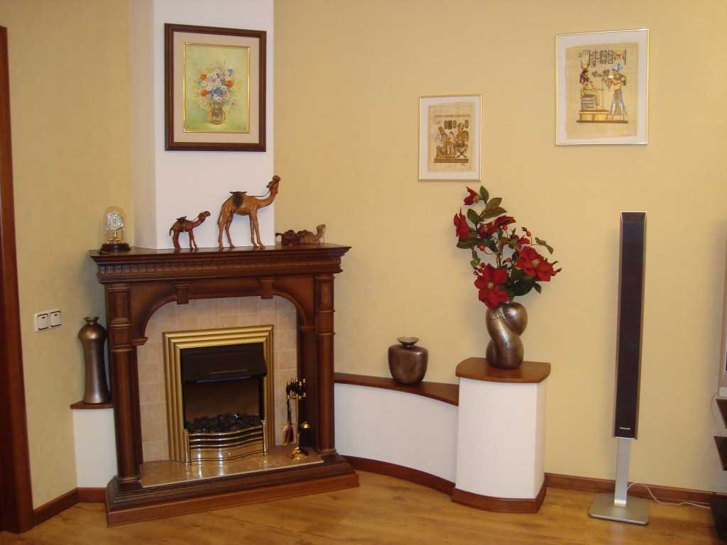 На декоративные столики можно установить фотографии родственников, домашний телефон или даже маленький изящный аквариум с золотой рыбкой. Статуэтки также впишутся в декор углов.