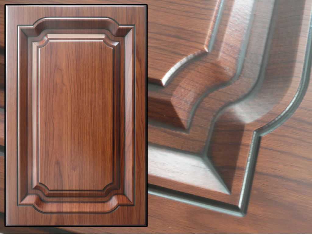 Особый интерес из всего многообразия представляет фасадный мебельный щит из ЛМДФ. Благодаря свойствам материала, из него можно формировать, к примеру, гнутые дверцы для угловых шкафов или фигурно вырезанные столешницы, фартуки для стен.