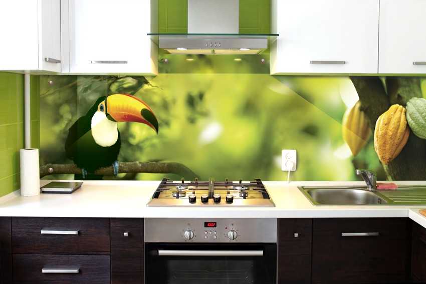 - стекло (прозрачное или окрашенное) — тоже один из вариантов отделки рабочей зоны.