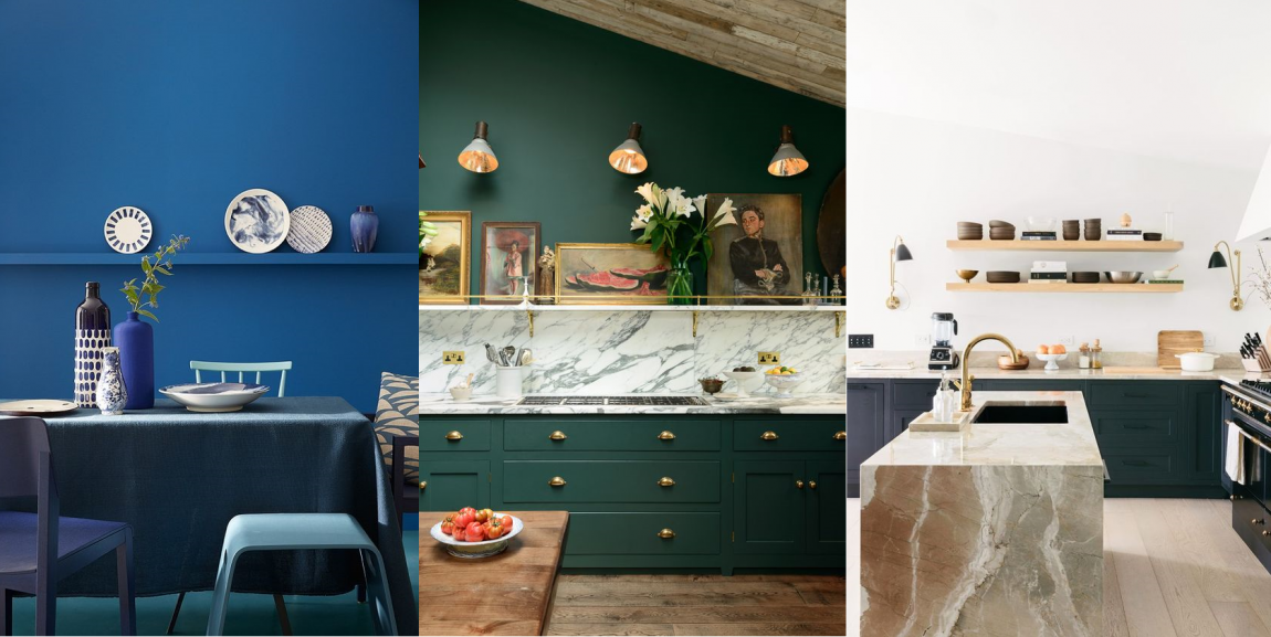 Как быть с рабочей зоной над плитой? Окрашенные стены можно смело комбинировать с кухонным фартуком или сплошной облицовкой «рабочей» стены. «Расписные» кухонные фартуки сегодня фигурируют в списке антитрендов, актуальной альтернативой для любителей минимализма может стать отделка рабочей зоны прозрачным экранами из акрила или термостойкого стекла.