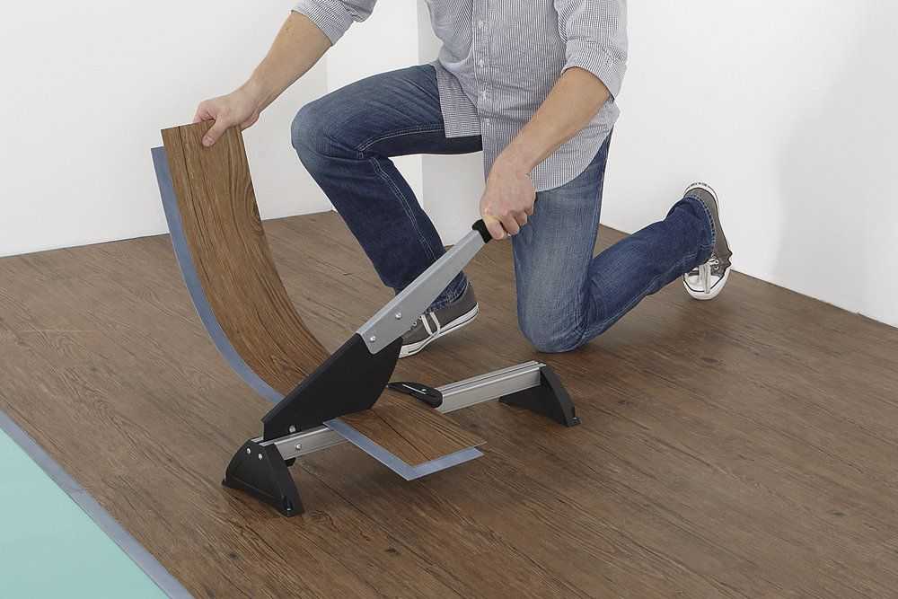 Такой станок позволяет справляться с резкой больших объемов материала достаточно быстро и при этом не зависеть от наличия источника электроэнергии. Это практически незаменимый инструмент, который имеется в наличии у каждого мастера, который занимается монтажом напольных покрытий профессионально.