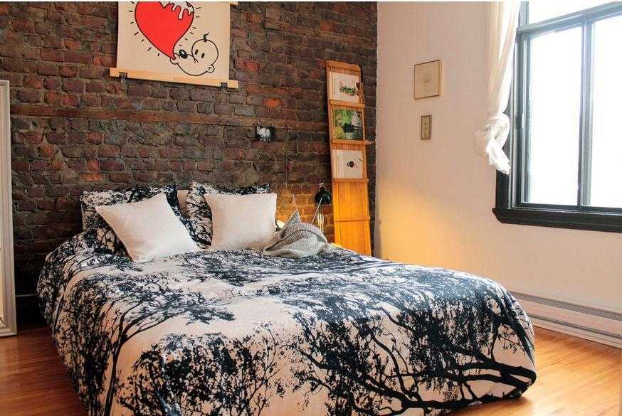 если белый цвет вам не по душе, выберет серую краску для кирпичной стены — это универсальный фон для любой мебели и аксессуаров.