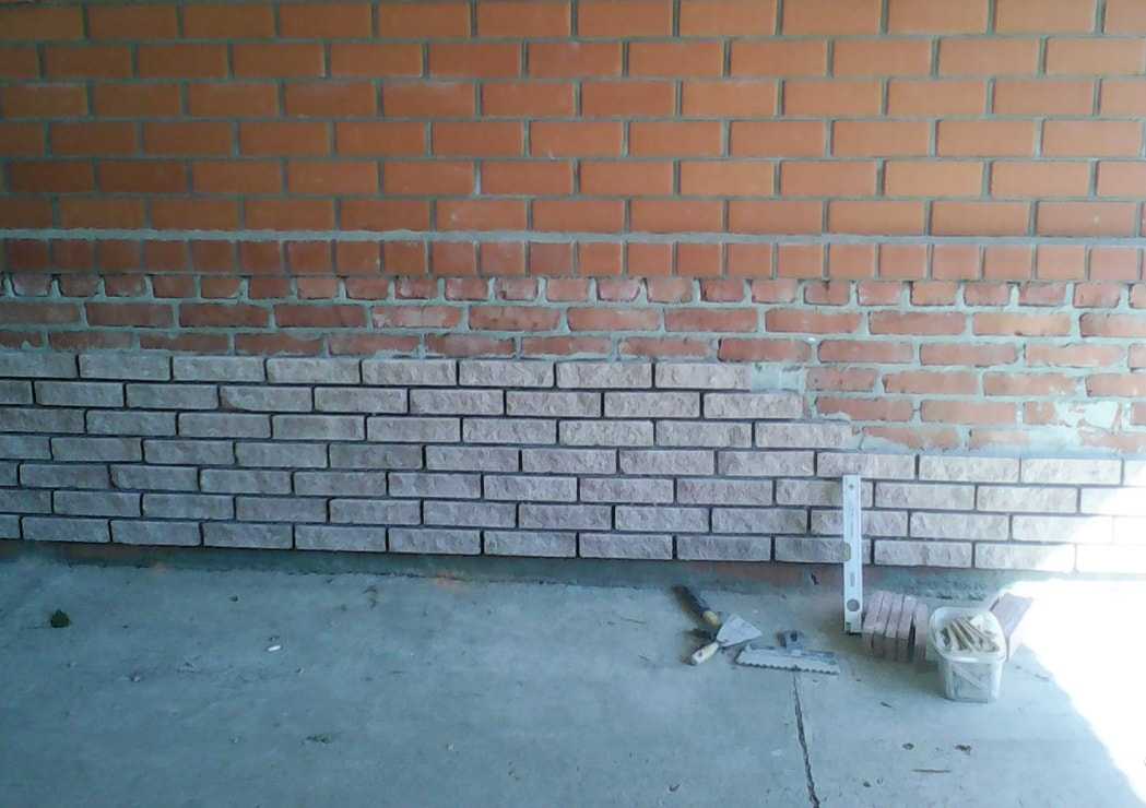 - Поверхность цоколя очищается от пыли и грунтуется. Грунт повышает адгезионные свойства камня.