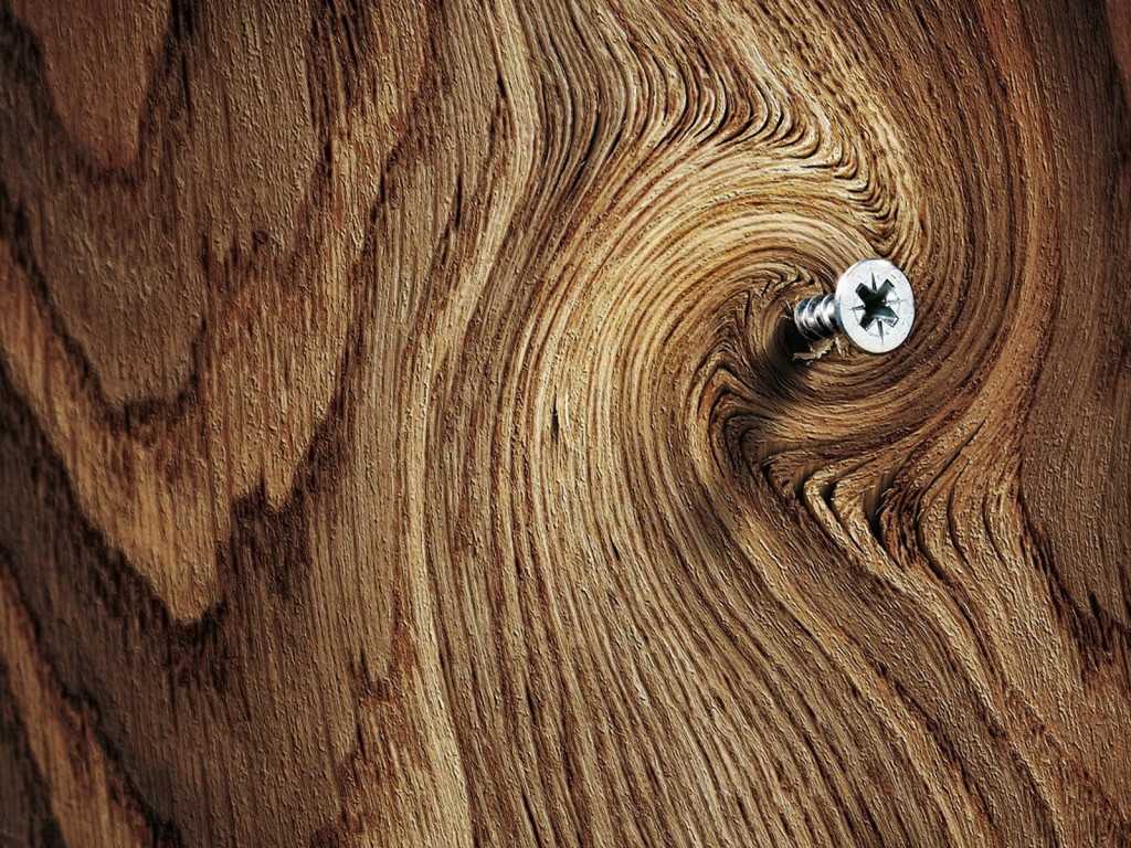 Конечно, с мягкими породами дерева проблем не должно возникнуть, но с дубом или акацией могут возникнуть сложности (плюс не забывайте о том, что древо может расколоться). Поэтому чтоб не испортить всю конструкцию сначала лучше просверлить отверстие меньшего диаметра в материале. Шляпку нужно вровень утопить в материале (для этого заранее просверливают таким же диаметром что и шляпка углубление).