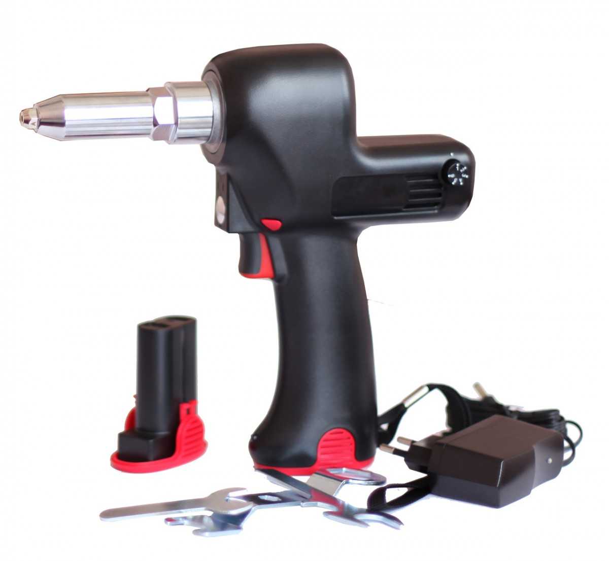 Эти заклепочники обладают высокой стоимостью по сравнению с теми, что питаются от сети. Аккумулятор необходимо постоянно подзаряжать. Так как он обладает значительным весом, то и инструмент будет тяжелее своего сетевого аналога. Использовать его необходимо в тех местах, где отсутствует возможность подключиться к электросети.