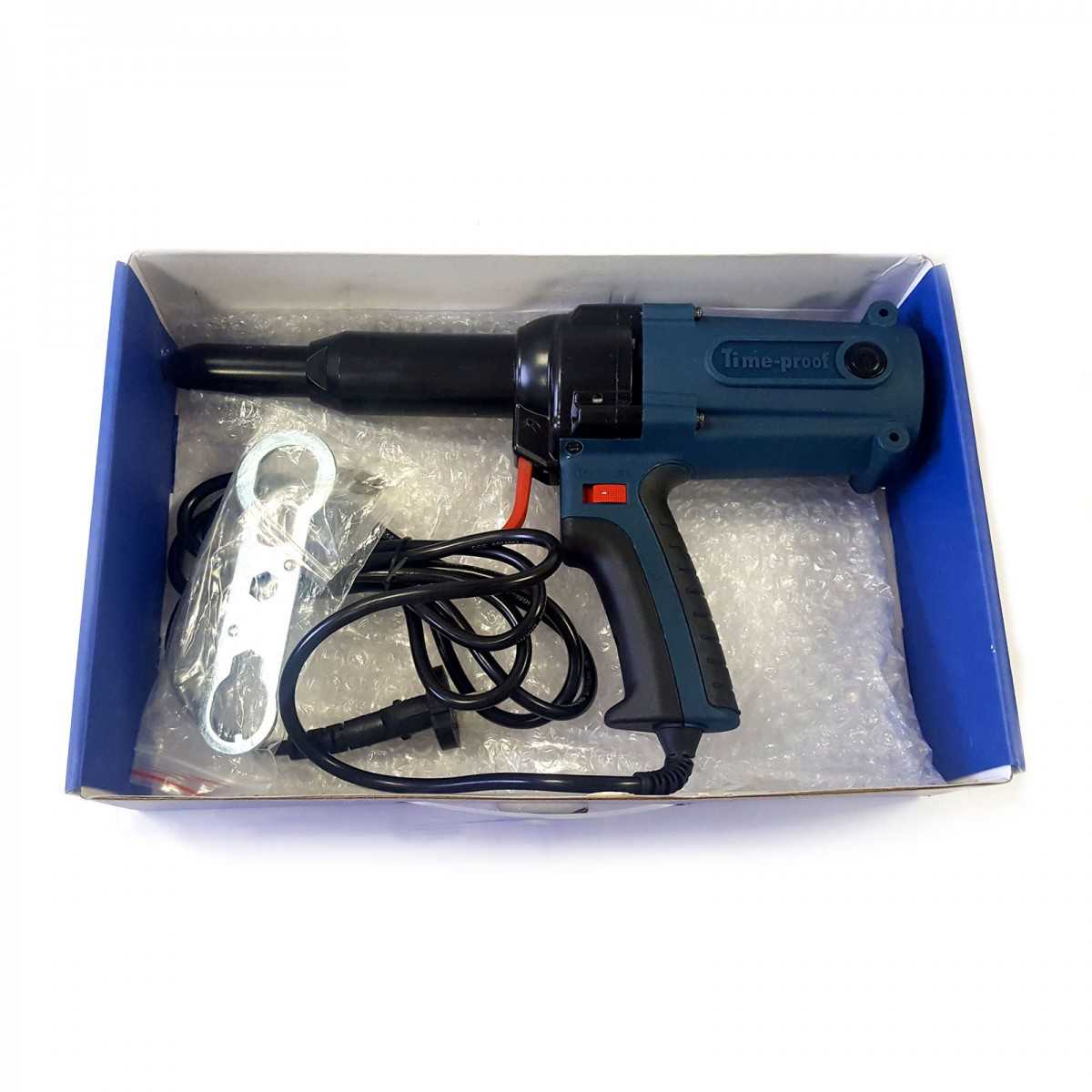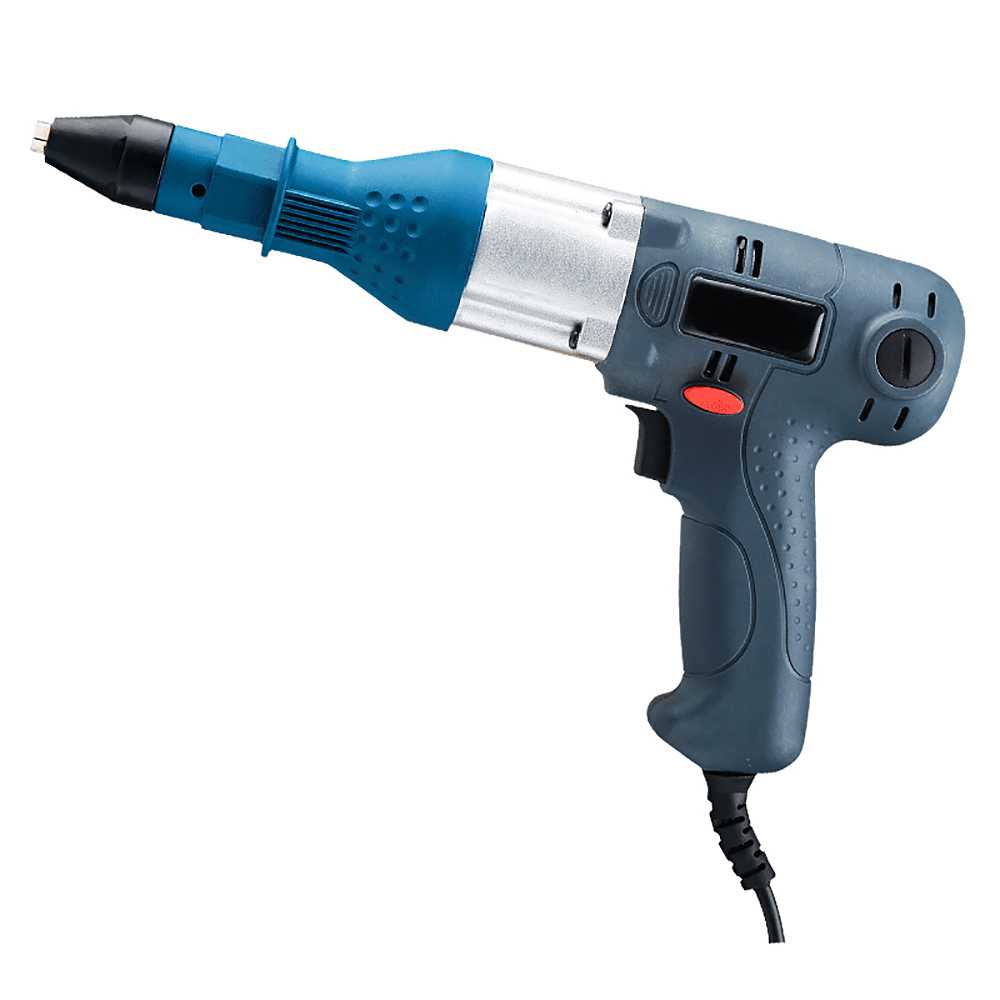 Данный вид заклепочников очень пригодится вам, если нужно установить большое количество вытяжных заклепок, но есть небольшая проблема: отсутствует подача сжатого воздуха. Этот инструмент питается от сети 220 В и является не таким мобильным, как аккумуляторный заклепочник. Однако и стоит он значительно меньше аккумуляторного, так как батарея является недешевым удовольствием. Отличаются данные модели и меньшим весом.