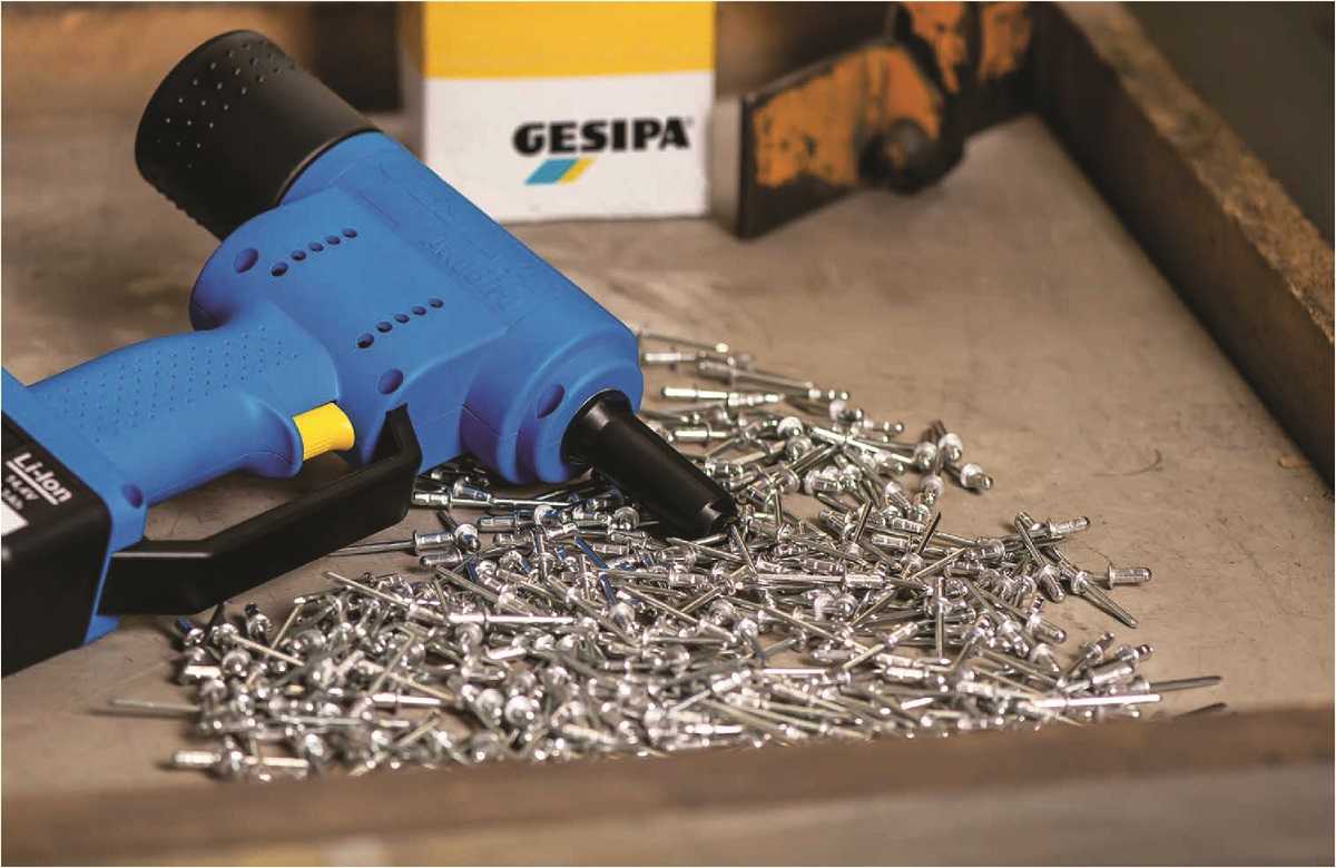- Модель GesipaAccubird 220V. Работает со сталью, алюминием, нержавеющей сталью. Вес устройства – 2, 45 кг. Длина – 265 мм. Корпус изготовлен из ударопрочного пластика. Длина шнура – 2,4 м. Устройство предназначено для работы с вытяжными заклепками не более 5 мм. В комплекте имеется контейнер для утилизации использованных стержней.