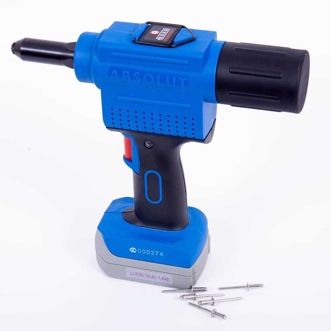 Аккумуляторные заклепочники обеспечиваются электронным блоком управления, предохраняющим аппарат от возникающих силовых нагрузок. Корпус инструмента изготовлен из ударопрочного материала.