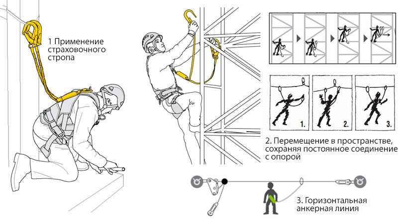 Существуют строгие правила по использованию всех этих страховочных систем привязей. Они входят в общие правила по охране труда, четко регламентированы, и при их нарушении налагаются крупные штрафы.