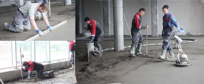 Технология упрочнения бетонного пола содержит несколько последовательных этапов: