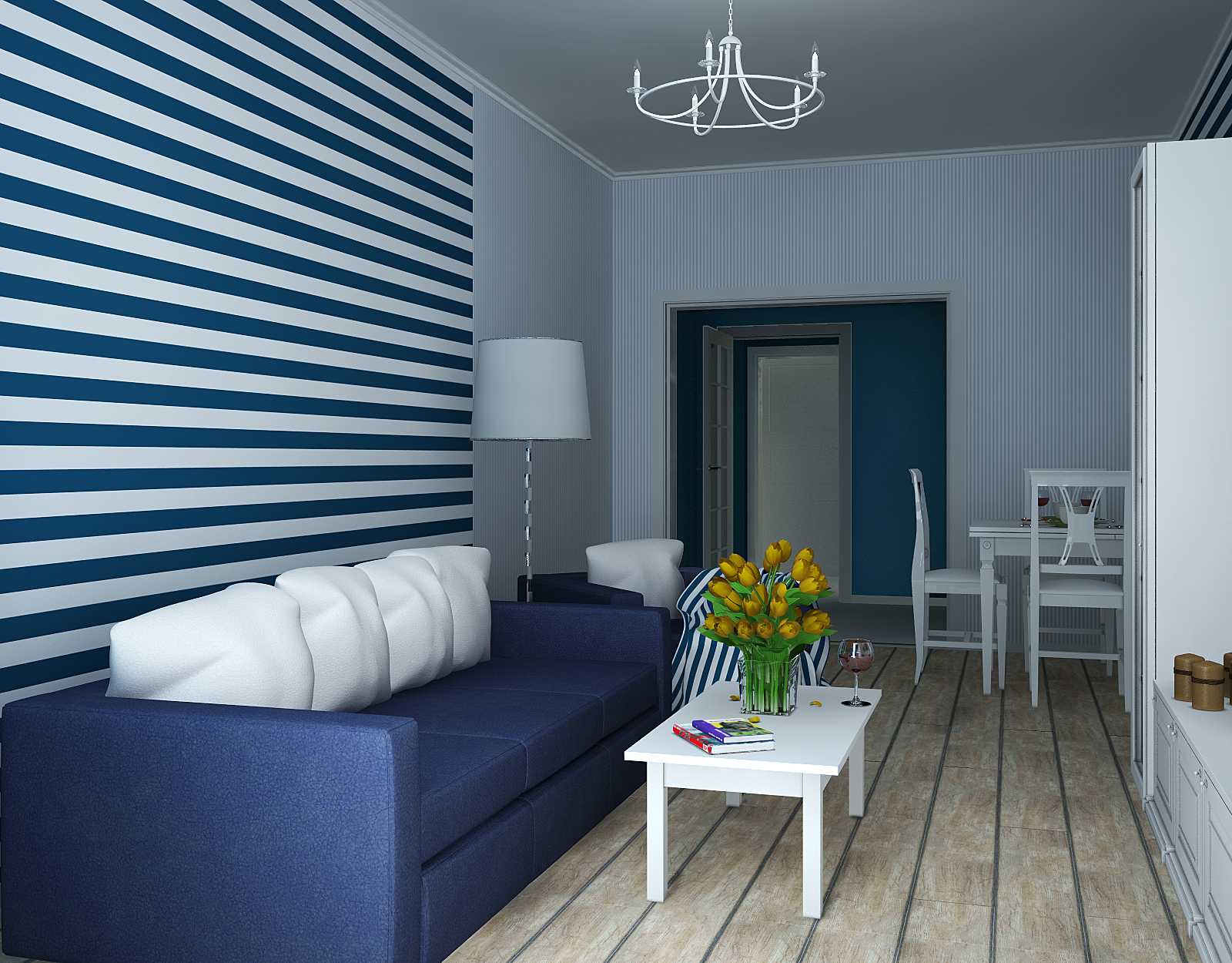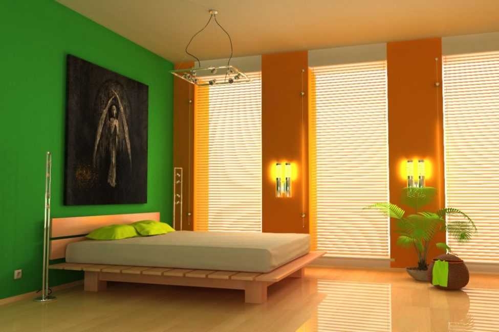 Яркий цвет — только на одной стене. Еще он повторяется в некоторых мелких деталях или имеет цвет-компаньон. В данном случае выбран второй вариант — цвет пола