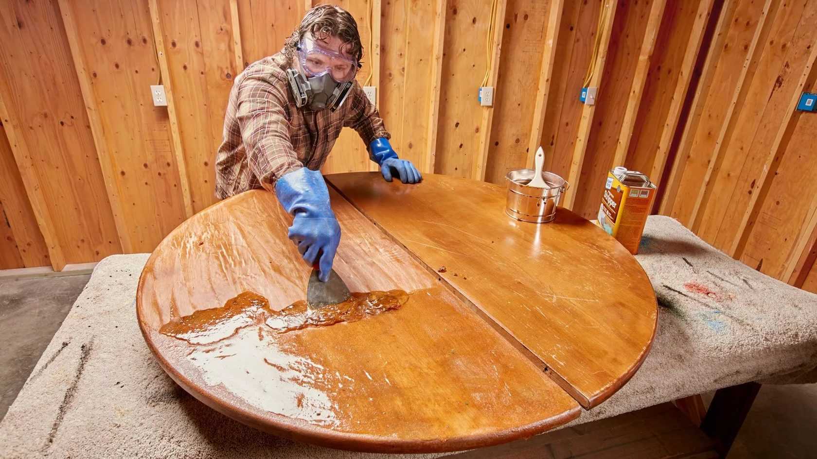 Также это покрытие защищает от температурных воздействий, не расслаиваясь и не трескаясь. Для удаления лакового покрытия, столешницу придется циклевать.