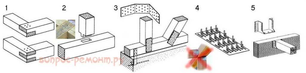 Крепеж — оцинкованные саморезы, гвозди, болты, накладки, скобы. Дополнительно можно использовать клей по дереву.