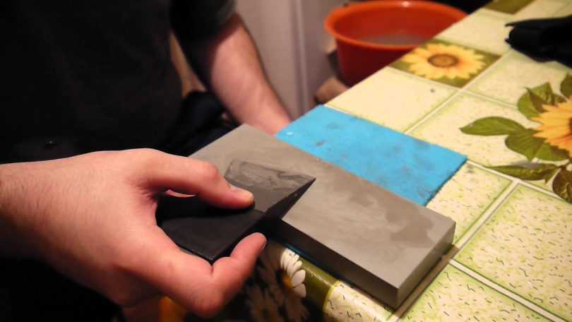 - Заточить лезвие наждачным станком или шлифовальным кругом средней зернистости с двух сторон до получения в меру острой кромки.