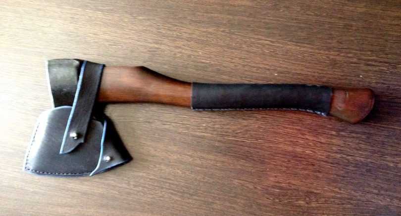 Не забывайте, что работать с острым инструментом всегда приятно, тогда как тупой топор – это больше дополнительных и совершенно ненужных усилий, быстрая усталость и не самый хороший результат. После того, как работы по изготовлению и заточке топора завершены, на лезвие надевается чехол. Это позволит продлить срок службы изделия, и затачивать его нужно будет не так часто. Чехол изготавливают из кожи, бересты, любого другого подходящего материала.