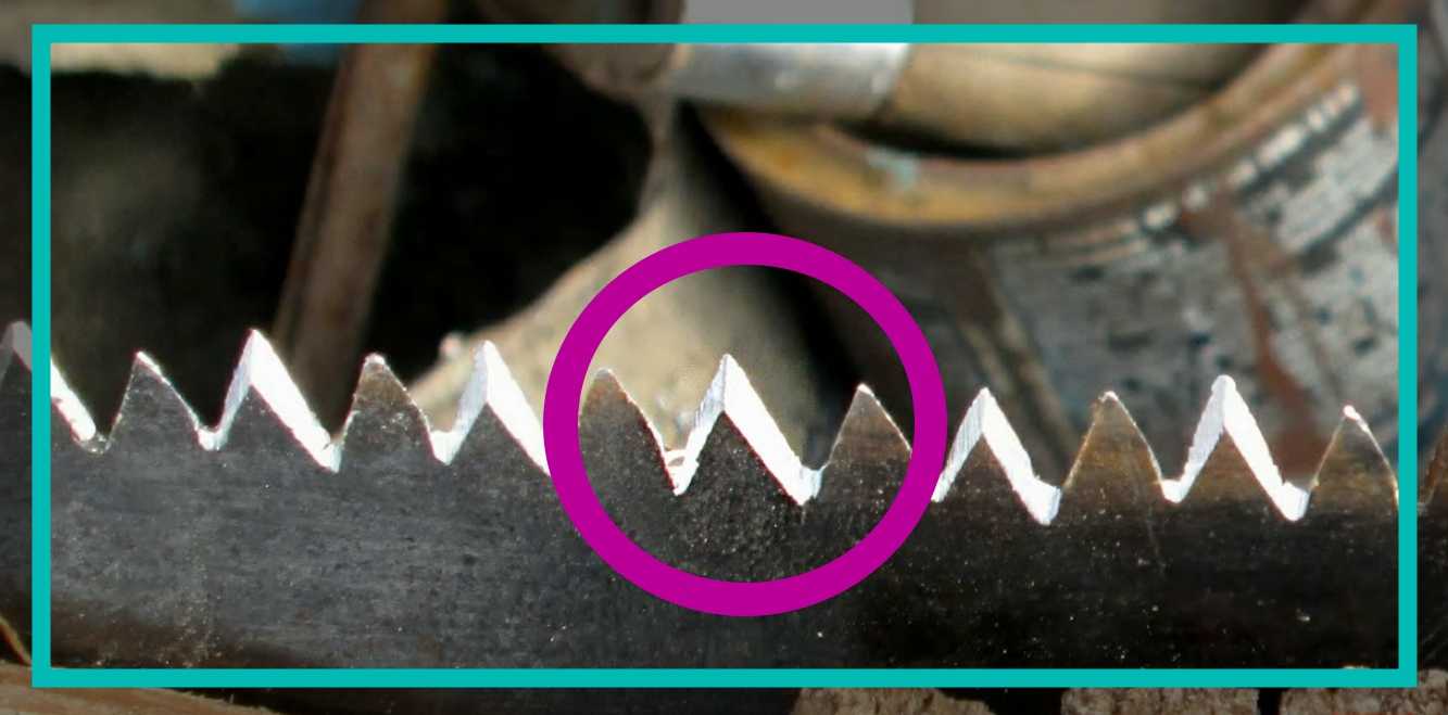 Деформацию зубьев можно определить визуально. Таким образом, на срочность операции укажут общее снижение производительности труда, уменьшение точности, изменение характера звука, округление вершин зубцов, увод инструмента от линии пропила и применение больших физических усилий.