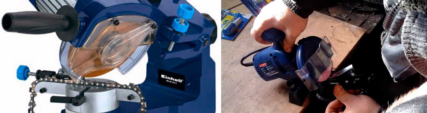 Такие станки оснащены специальными функциями для заточки под под определённым углом. Благодаря станку появляется гарантия, что диск к цепи будет подведён с максимальной точностью и аккуратностью. Также существуют станки со специальными тисками для зажатия цепи. Этот способ максимально подходит для новичков, поскольку удобство и безопасность гарантированы. Стоимость такого станка напрямую зависит от его функциональности.