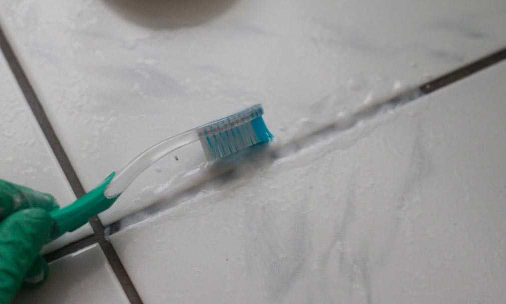 Как и в предыдущем случае, следует смочить средством швы и дать ему время, чтобы впитаться и вывести грязь, по прошествии которого обработать щеткой и тщательно смыть грязь водой.