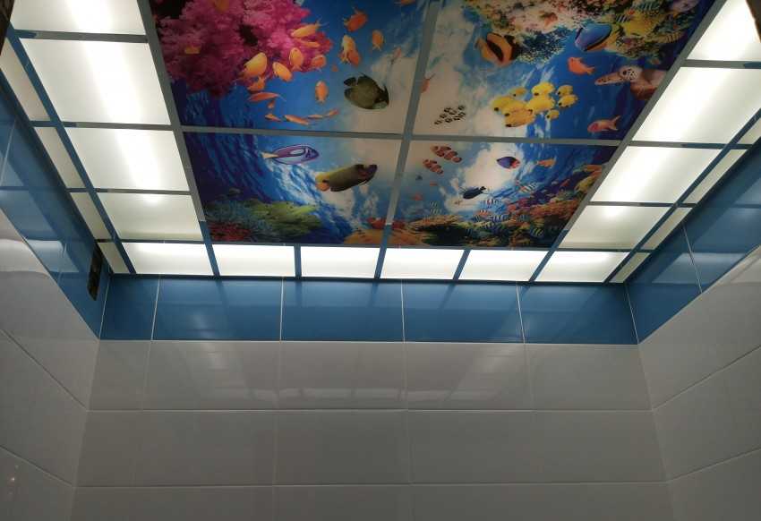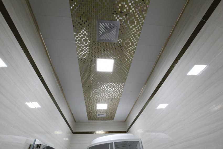 Пленка удобна стойкостью к деформации. Она долговечна, не меняет первоначальный цвет. Отличается небольшим весом, способна удержать воду в случае протечки из квартиры сверху. Однако при проколах или механическом повреждении ее придется менять. Мозаику для потолка применять стилисты не советуют: она сочетается не с каждой отделкой стен и стилистическим решением интерьера ванной.