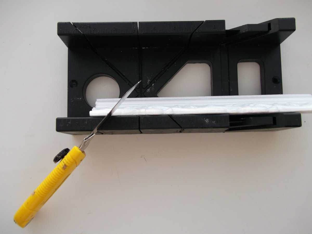 Строительный нож – позволяет легко резать мягкий пенопластовый галтель. Работать им не сложно, а срез получается ровным и гладким. Вместо строительного допустимо применить обычный нож – главное, чтобы он был достаточной остроты и длины.