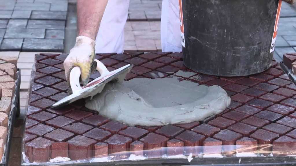 Последний вариант используют при заполнении швов между камнями с плоской и ровной поверхностью. Потребуется за один подход готовить большое количество смеси, так как ее нужно будет нанести по всей площади отделочного материала. Этот метод заполнения швов имеет свои достоинства: