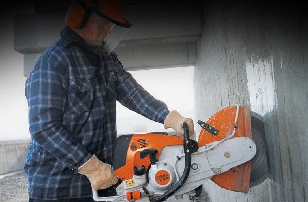 - В случае если в процесс разлома обнаружена арматура, пруты распиливаются при помощи болгарки.