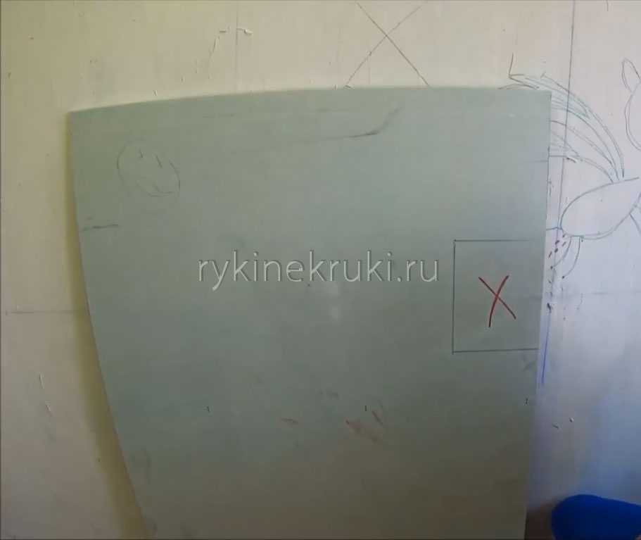 С внутренней стороны, которая будет повернута к стене, нужно карандашом расчертить ровную линию по собственному усмотрению