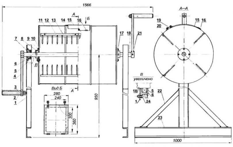 Чертеж самодельной бетономешалки из бочки