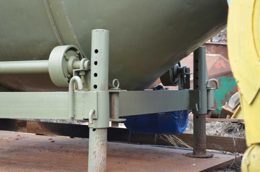 Обязательно следует продумать вопрос герметизации сливного отверстия бака, чтобы не допустить вытекания раствора во время приготовления. А после завершения всех подготовительных работ емкость устанавливается на раму, подключается к двигателю. Она готова к работе.