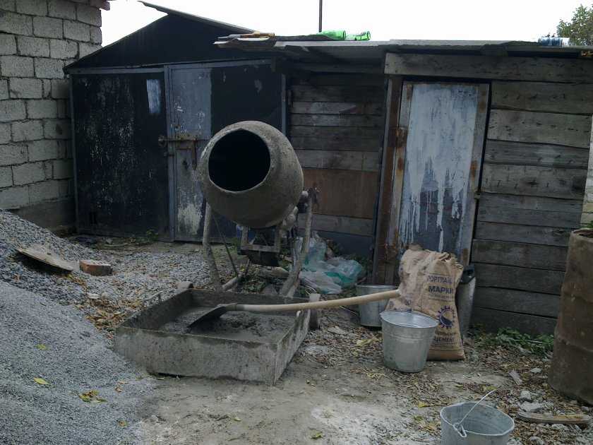 Бетономешалку своими руками сделать нетрудно, а скорость работы увеличивается намного даже с самой простейшей мешалкой. И, конечно, приятнее хлебнуть чайку из термоса пока месит, чем надрываться с лопатой. Не чайку и не из термоса – категорически не рекомендуется: качество работы катастрофически падает при самой совершенной технике.