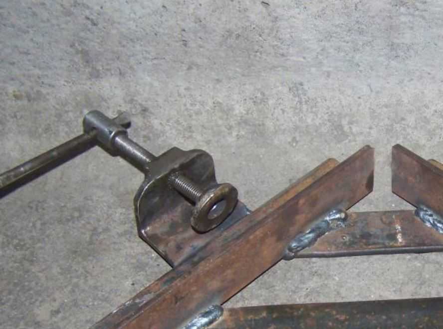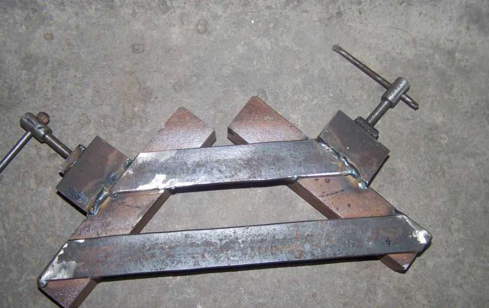 Струбцина для сварки труб легко изготавливается из металлического уголка и стальных пластин.