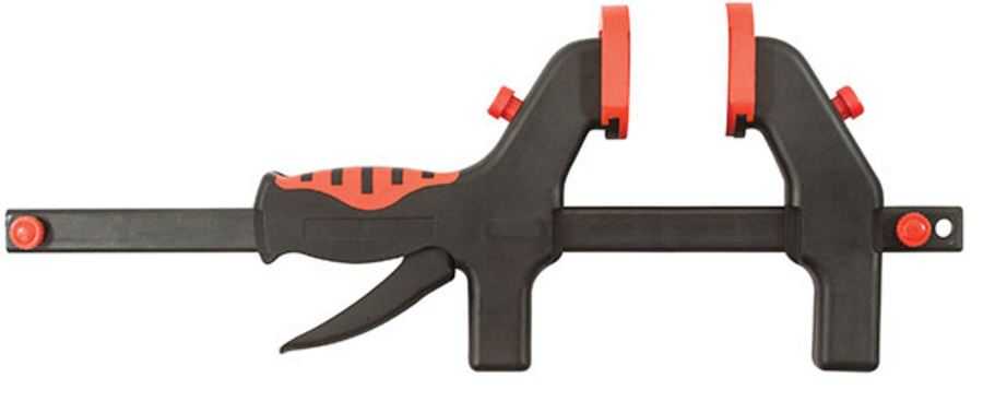Это приспособление выпускается в разных вариантах, от универсальных до специализированных. Сравнительно недавно появилась новая модификация: быстрозажимная струбцина. Развивает усилие сжатия до 450 кг.
