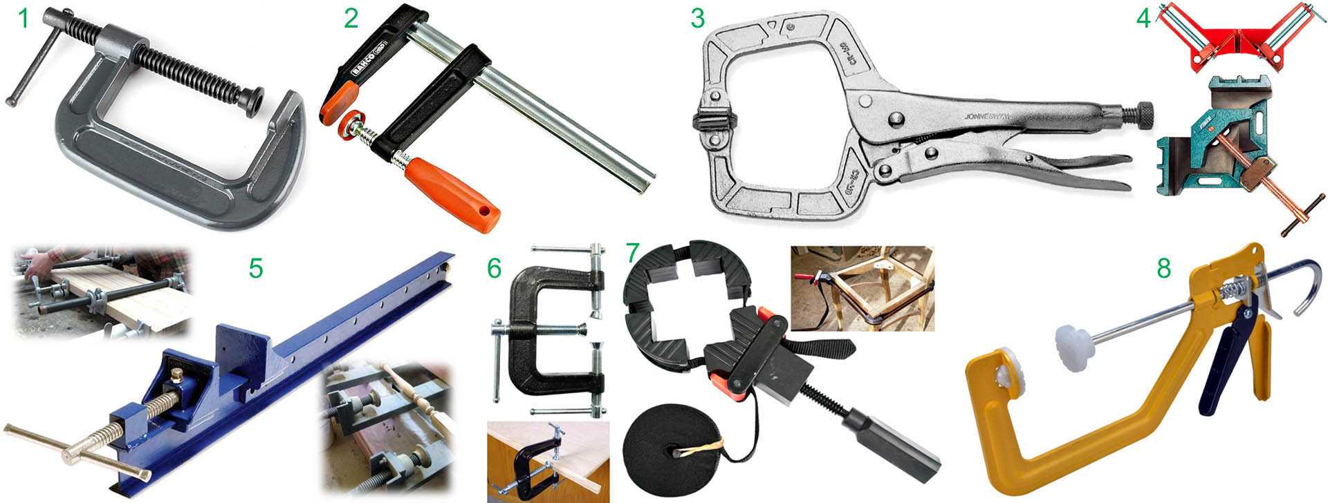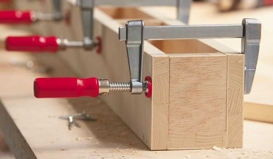 В арсенале мастеров столярного дела, которые выполняют большой объем работ по склеиванию, имеются корпусные струбцины, такие как Bessey KR Revo, струбцины GROZ, быстрозажимные или трубные струбцины.