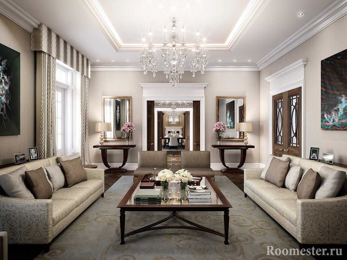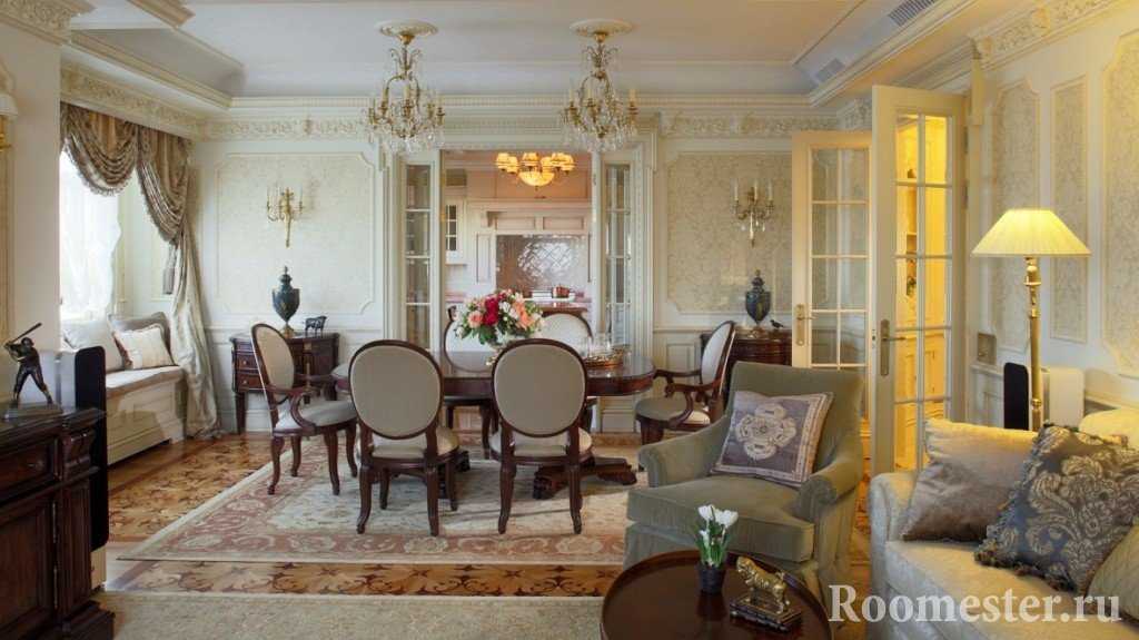Выражается сдержанностью, гармонией и прямолинейностью форм. Классический дизайн при всей своей помпезности может выглядеть более аккуратно, нежели новомодный хай-тек. В лепнине прослеживаются четкие прямые линии, квадраты, прямоугольники, используются розетки, цветы, разные орнаменты, узоры, повторение несложных мотивов. Иногда уместными будут символы любви: птицы, факелы, цветы.