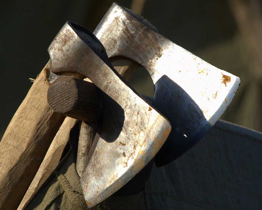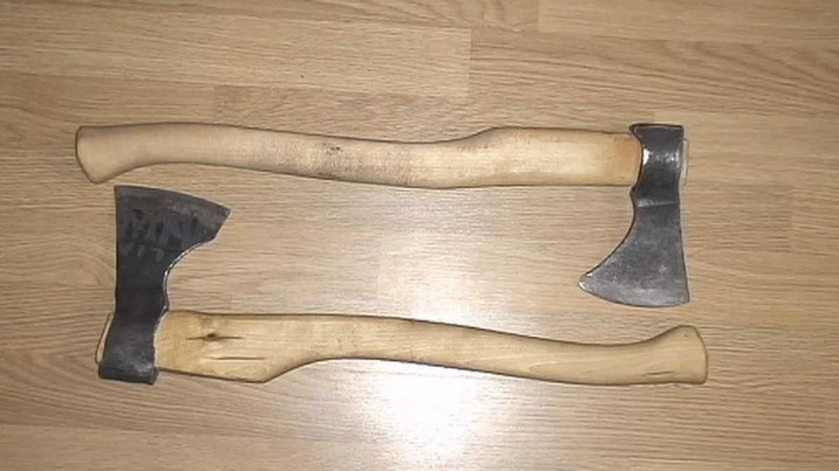 - Перед тем как насадить топор на топорище, нужно выровнять в одной плоскости ось клинка и ось рукояти.