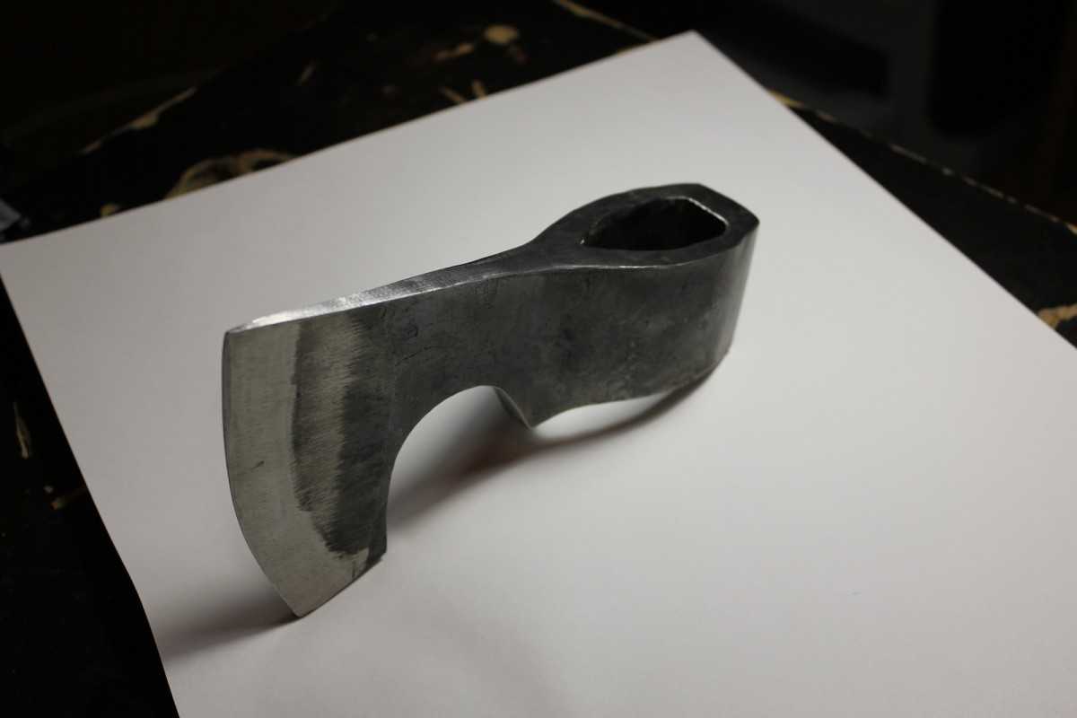 Путем дальнейшей обработки следует добиться этого размера на топорище в районе изначально нанесенной граничной отметки. Причем обработка производится по всему периметру заготовки, чтобы она полностью вписалась в выходное отверстие топора.
