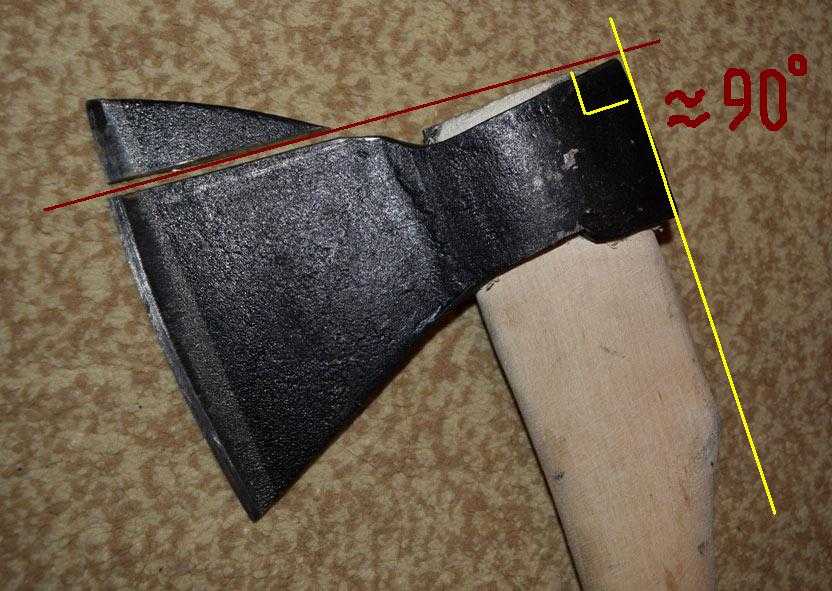 Лезвие дровяного топора затачивается под углом около 40-60 градусов для лучшего разрубывания.