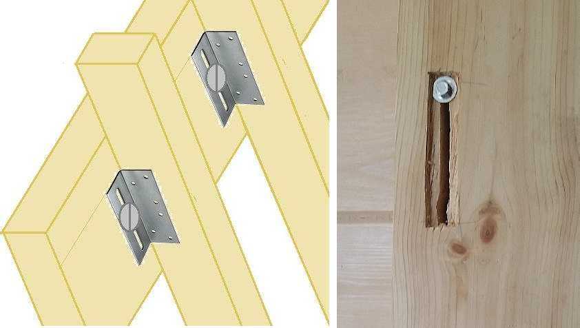 Потому планки обрешетки делают немного короче — чтобы они не доставали до пола и потолка. Второй момент — их крепят не напрямую к стене, а через специальные приспособления. Для крепления деревянных брусков есть металлические уголки с прорезями на одной из полочек. Это и есть крепления для устройства плавающей обрешетки (на фото слева). Они жестко крепятся к бруску обрешетки, а к стене деревянного дома — через прорезь саморезом с большой плоской шляпкой или болтом с шайбой. Получается что при вертикальных подвижках деревянной стены обрешетка на ней будет находится в одном положении.