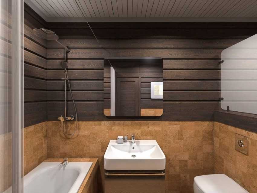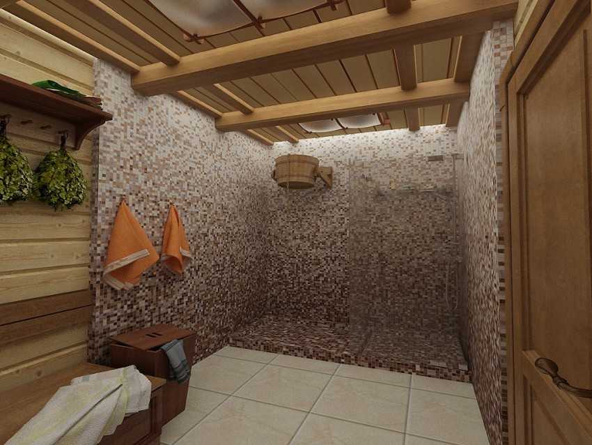 В частных домах нередко делают комбинированную отделку стен. В основном она деревянная, облицовка плиткой присутствует в областях, где часто разбрызгивается вода. Гидроизоляция стен тоже необходима.