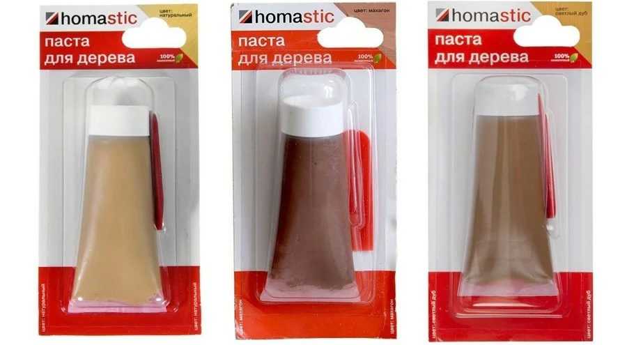 Пасты этого типа продаются в строительных магазинах в баночках, брикетах или другой упаковке и могут отличаться по консистенции (более или менее вязкие). Взяв с собой часть ламината (доску или ее обрезок), подобрать состав по цвету будет проще.