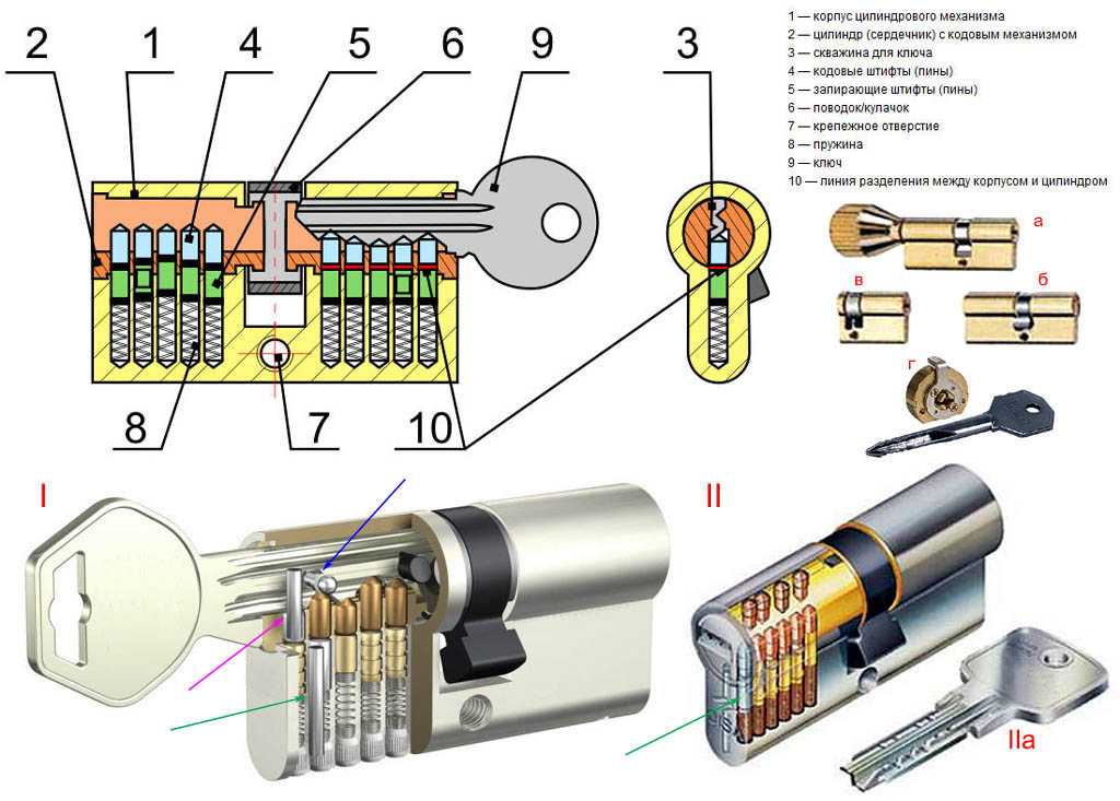 Именно от материала изготовления и сложности пинов и зависит износостойкость механизма, степень сопротивления и сложность подбора ключей.