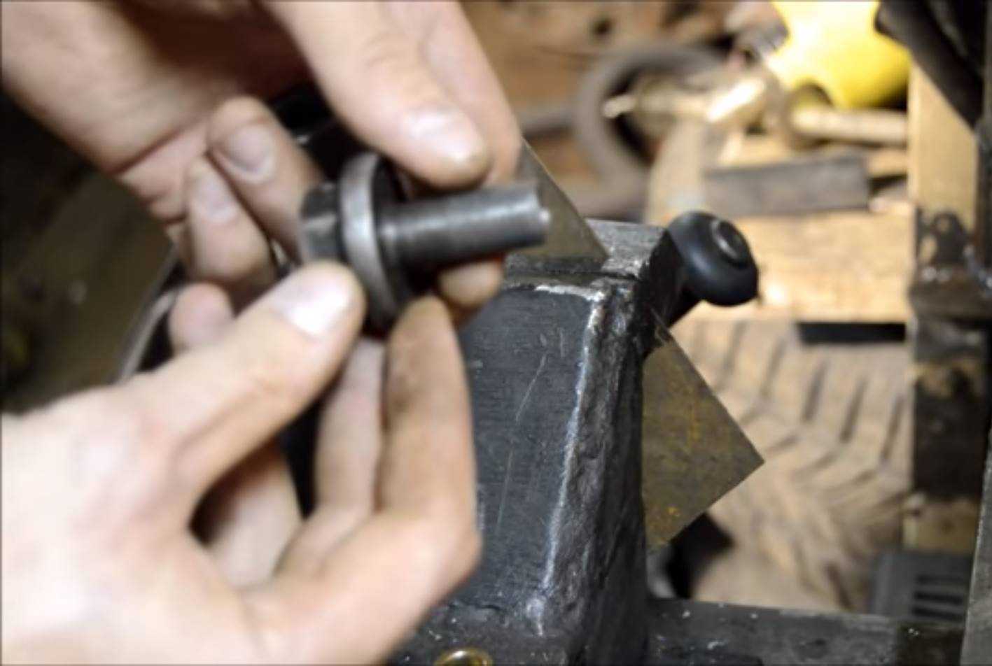 Дополнительно потребуется гайка, которая будет свободно накручиваться на резьбу болта с большим диаметром, а также разборной подшипник. Внутренний диаметр подшипника должен быть таким, чтобы в него свободно мог проходить болт большой длины, который будет использоваться для зажима. Конструкция собирается довольно просто. Для этого необходимо длинный болт вставить внутрь большего по диаметру. На большой болт накручивается гайка, а на резьбу длинного болта надевается разборной подшипник.