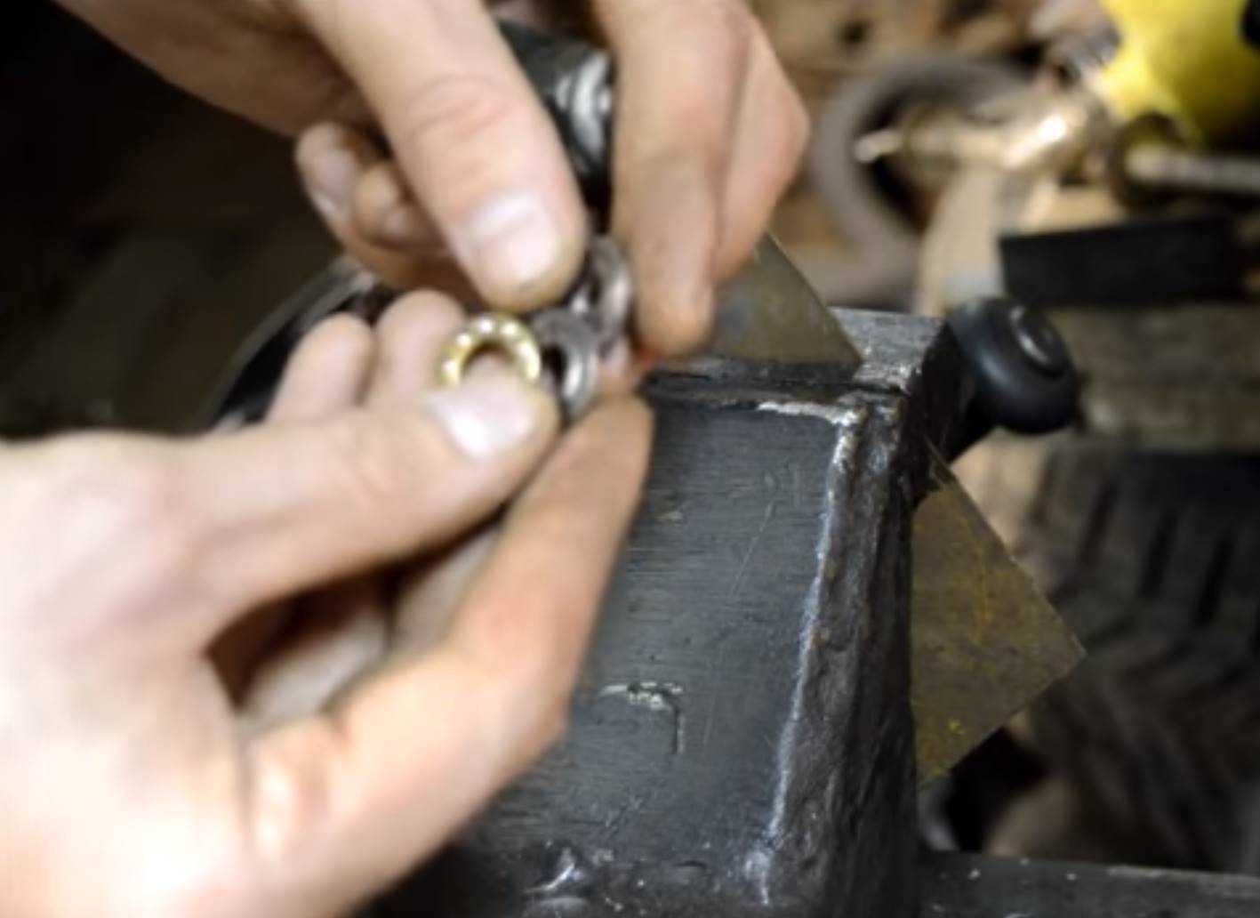 На длинный болт накручивается заклепка, которая должна быть установлена в отверстие. Для работы потребуется два ключа. Один из них будет удерживать гайку, а второй должен вращать болт. Упростить задачу можно тем, чтобы приварить к гайке рукоятку. Болт вращается до тех пор, пока упор не станет значительным. Слишком усердствовать не стоит. Как только результат будет достигнут, необходимо выкрутить длинный болт. Подшипник в этом случае является стабилизатором, который предотвращает закусывание болта внутри конструкции. Видео об этом заклепочнике есть ниже.