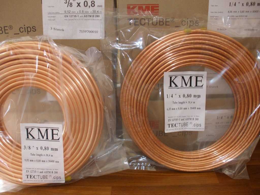 Медные толстостенные бесшовные трубы (не водопроводные, а специальные для систем охлаждения и кондиционирования). Трубы потребуются двух диаметров — большего и меньшего. Конкретные цифры будут указаны в мануале, длина каждого отрезка равна длине трассы плюс 20-30 см на запас